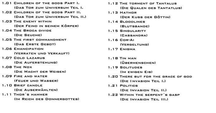 SG1 Season Guide